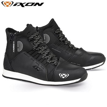 Sneakers da moto per tutte le stagioni, impermeabili e traspiranti dal look techwear innovativo. Materiale esterno in poliuretano Suede e Honeycomb Ripstop. Parte elasticizzata alla caviglia. Membrana esterna impermeabile e traspirante (26000 Schmerber). Rinforzi nella parte anteriore del piede e nel tallone. Cinturino a doppia filettatura. Chiusura con doppia zip sui lati. Nuova suola in gomma tipo running. Omologazione DPI CE livello 1.